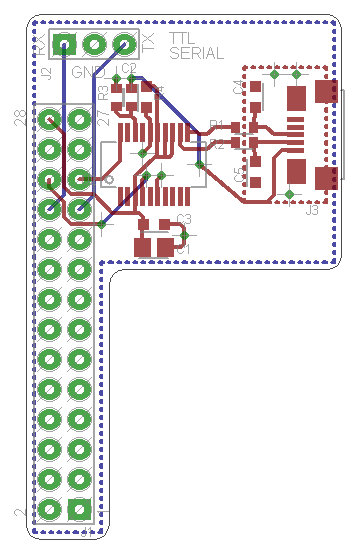 The Serial I/O board can function as a 3.3Vdc TTL serial level or a micro USB interface. The default serial port is set to 115Kbaud, 8 data bits, 1 stop bit, and no parity. When connected to port 4, the pin out is as follows: RX-pin 32 and TX-pin-31.