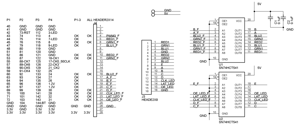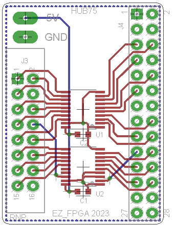 This board supports one HUB75 connector with both 8 to 1 and 16 to 1 multiplexing.