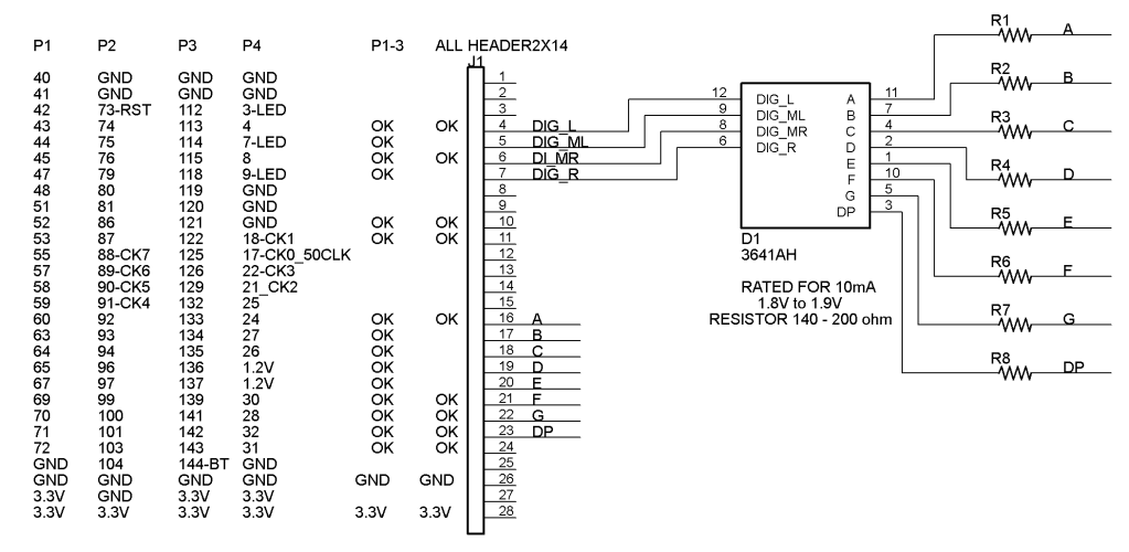 This board demonstrates multiplexing on a four-digit seven-segment display.